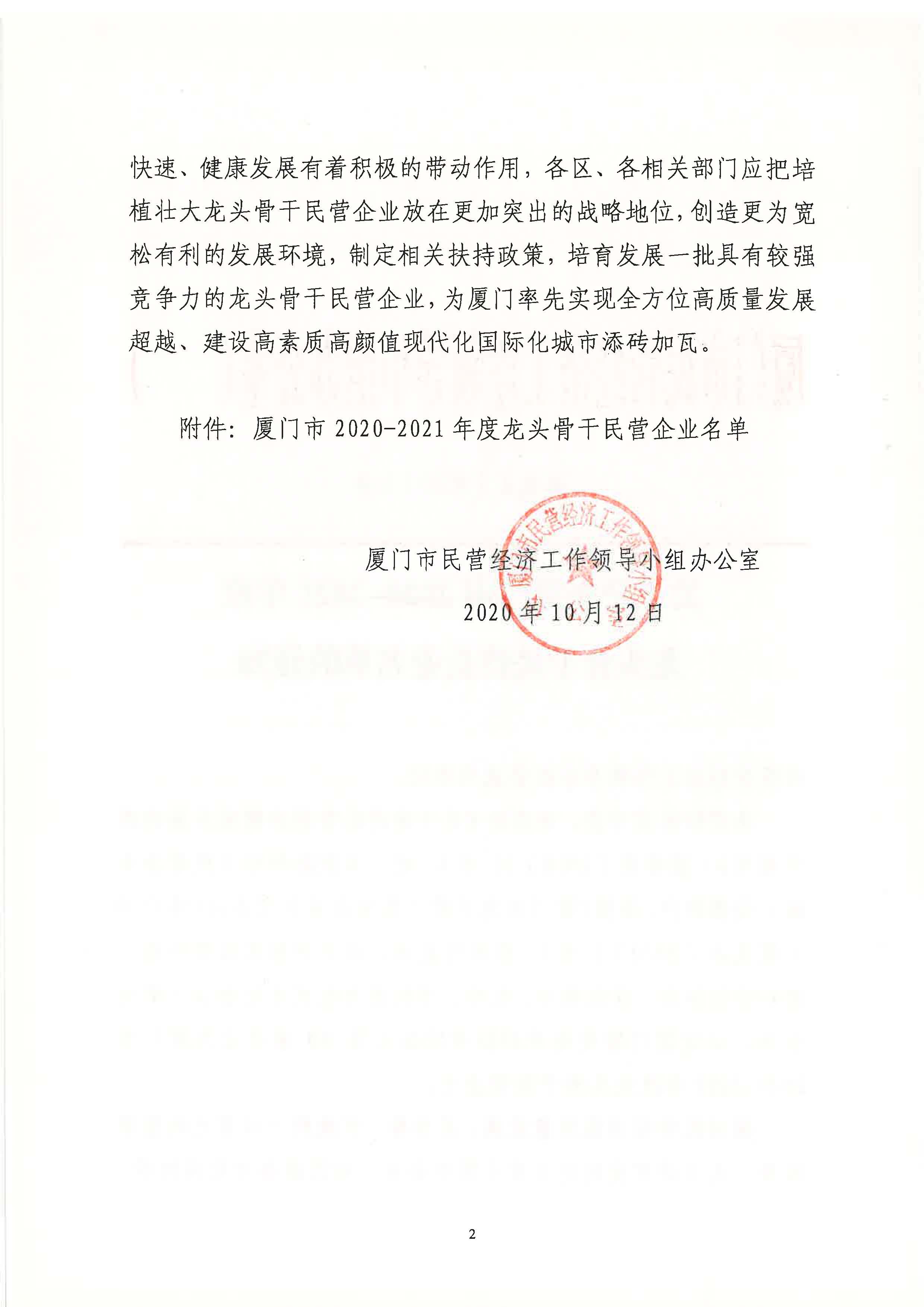 日前,廈門市民營經濟工作領導小組辦公室下發《關于公布廈門市年度龍頭骨干民營企業名單的通知》,廈門恒興集團作為其他現代服務業企業,獲得“廈門市年度龍頭骨干民營企業”稱號。