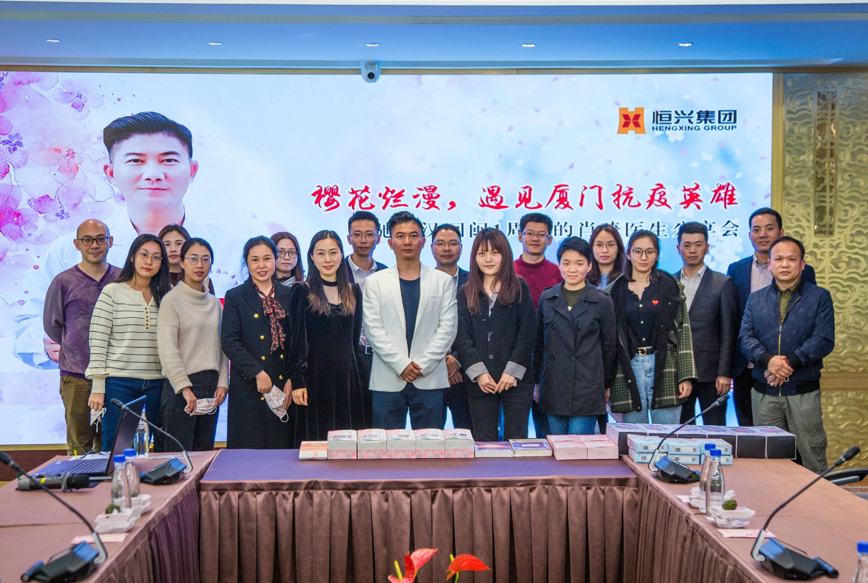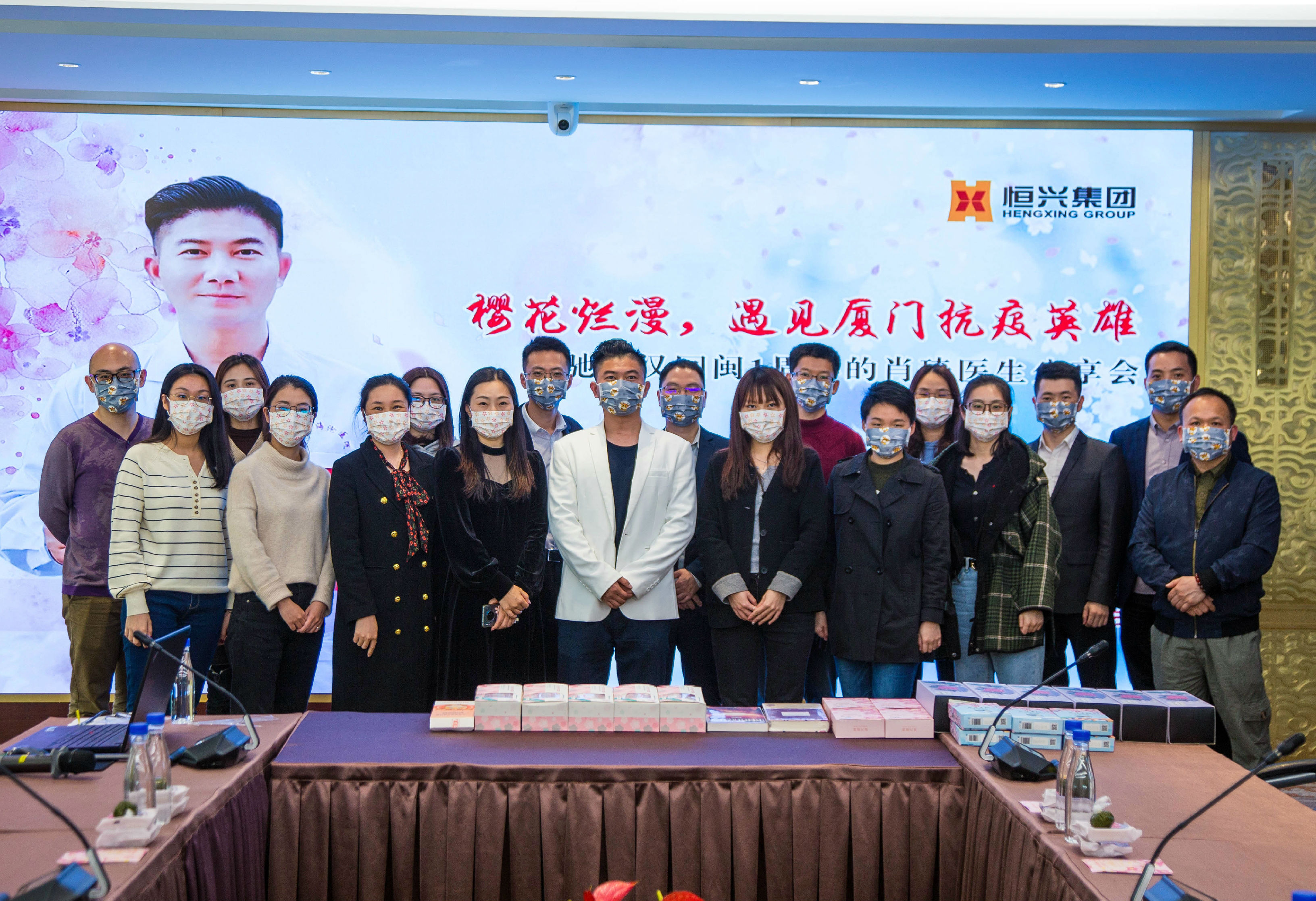肖琦醫生去年1月27日出發武漢,58天后,2020年3月24日回福建。第35期悅界分享的舉辦時間,正是福建首批醫療隊回閩1周年。分享會上,恒興員工和戴上櫻花口罩,和肖琦醫生一起度過這特殊的周年紀念。