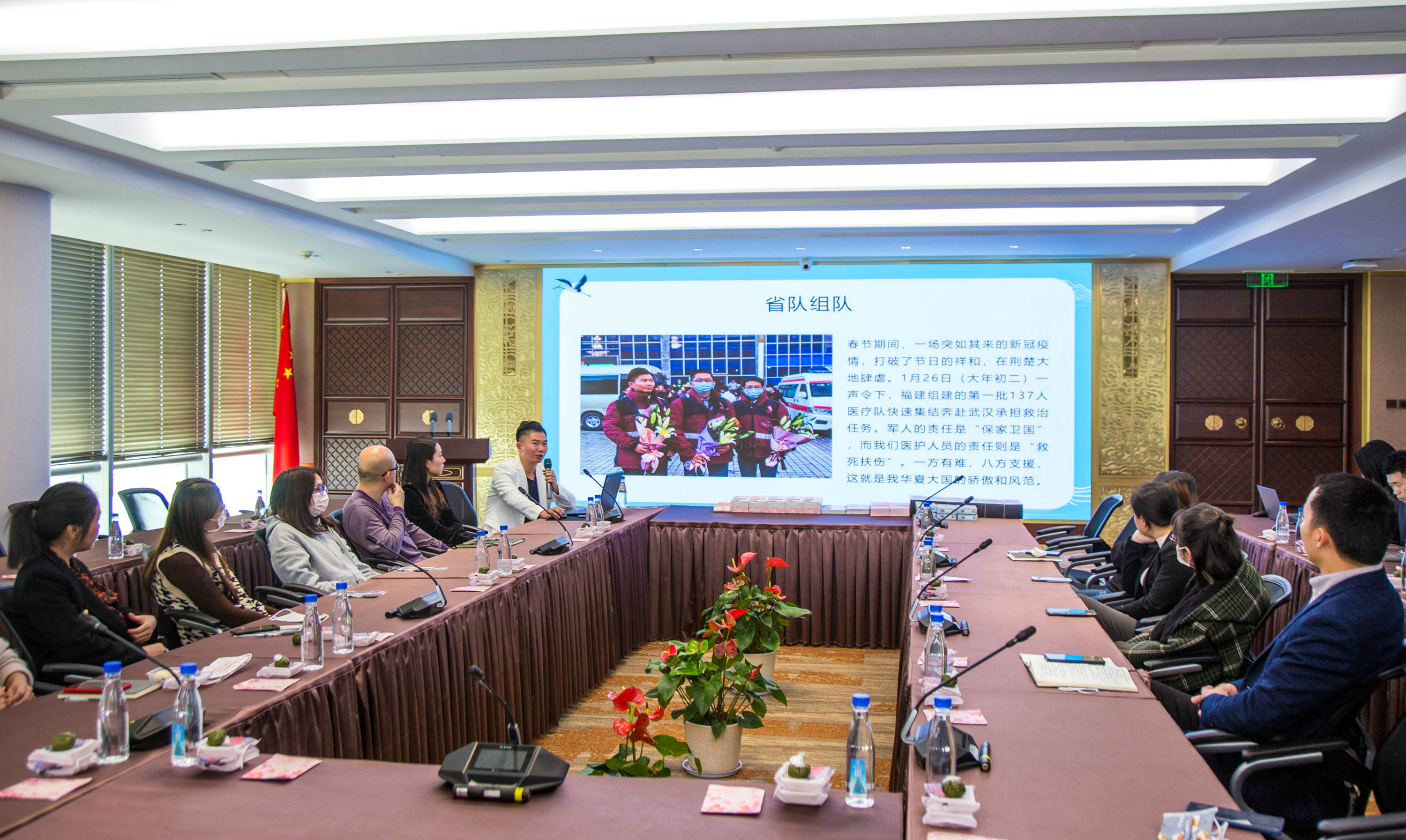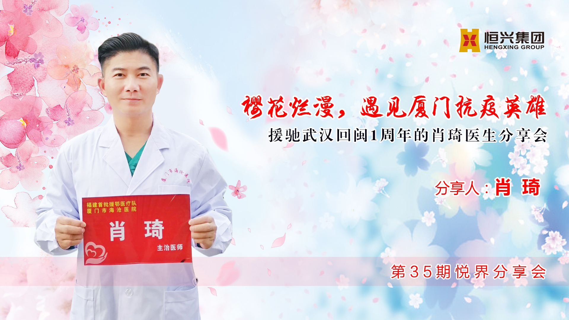 昨日(3月24日)下午,恒興集團舉辦第35期悅界分享會,主題為“櫻花爛漫,遇見廈門抗疫英雄——援馳武漢回閩1周年的肖琦醫生分享會”。當天下午,肖琦準時現身恒興集團,員工在42樓前臺送上代表陽光幸福的花束。稍事休息,肖琦便開啟了他的抗疫經歷分享。