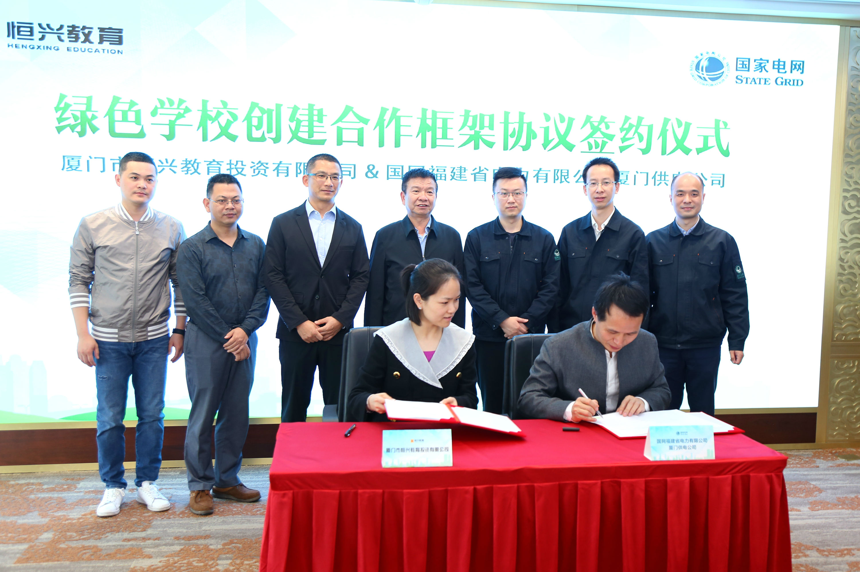 4月9日上午,恒興集團(tuán)旗下廈門市恒興教育投資有限公司與國(guó)網(wǎng)福建省電力有限公司廈門供電公司在財(cái)富中心43樓多功能廳舉行簽約儀式,合作創(chuàng)建綠色學(xué)校。