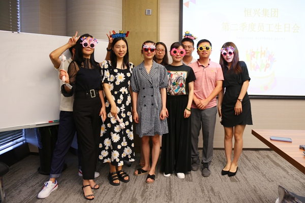 被歡樂包圍的壽星們,個個幸福洋溢,紛紛拿起小道具合影留念,至此,第二季度員工生日會畫上圓滿句點。