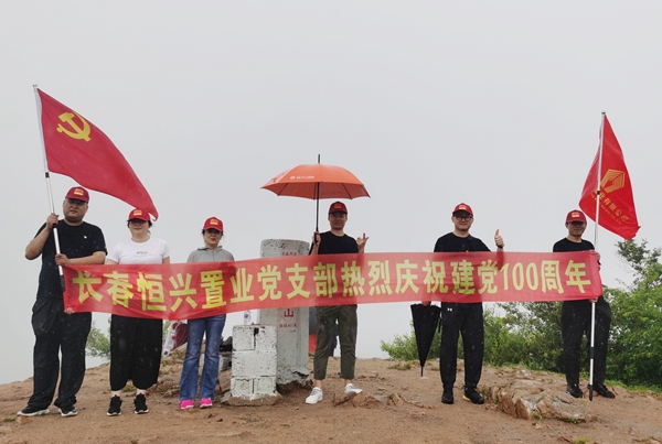 當天上午,由長春恒興置業有限公司黨支部書記劉志達帶隊、全體黨員和積極分子參與,邀請長春公司董事長楊聯城、總經理羅占國、總經理助理周劍秋,齊聚海拔400余米的長春大頂子山腳下(大頂子山:長春市轄區最高點),高舉鮮紅的黨旗和長春恒興置業有限責任公司旗幟,向長春最高峰出發。